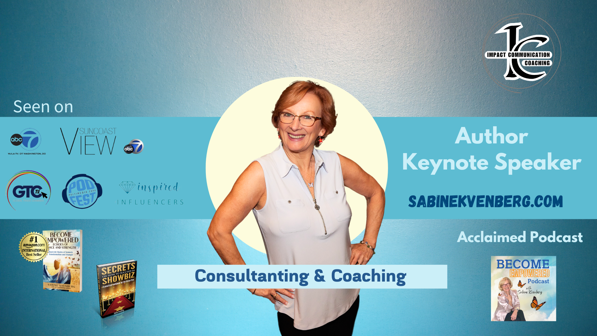 Sabine Kvenberg is a keynote speaker, bestselling author, and founder of Impact Communication Coaching. Known as The Storytelling Dame, she helps leaders, entrepreneurs, and teams master The Invisible Stage™—the unseen moments of preparation and everyday conversations where influence is won or lost. Drawing from her 30+ years as an actress, director, and performing arts school founder, Sabine blends performance and business expertise to teach audiences how to speak with confidence, craft unforgettable stories, and connect with lasting impact.